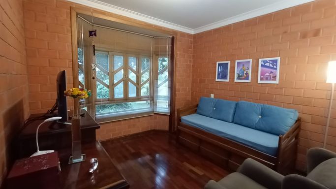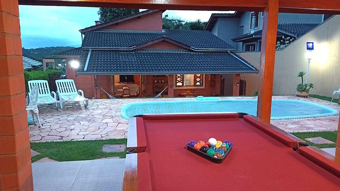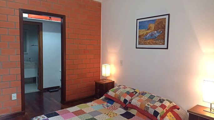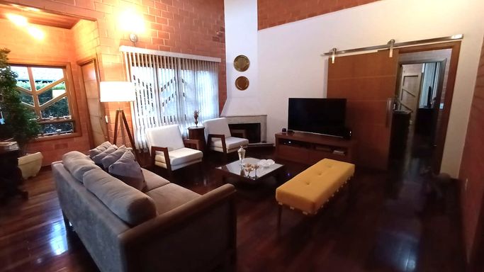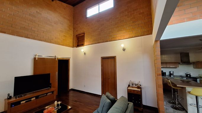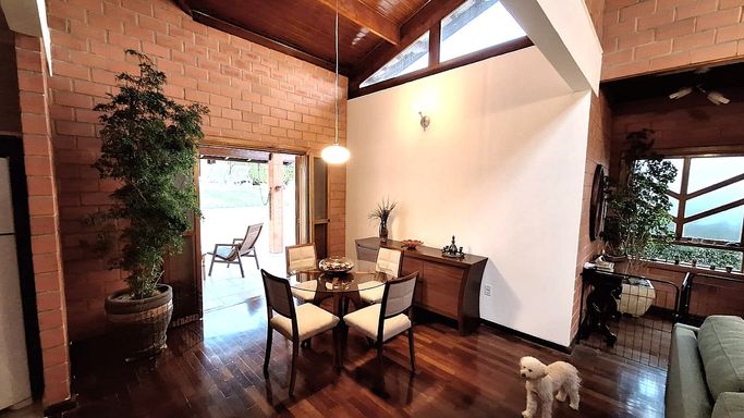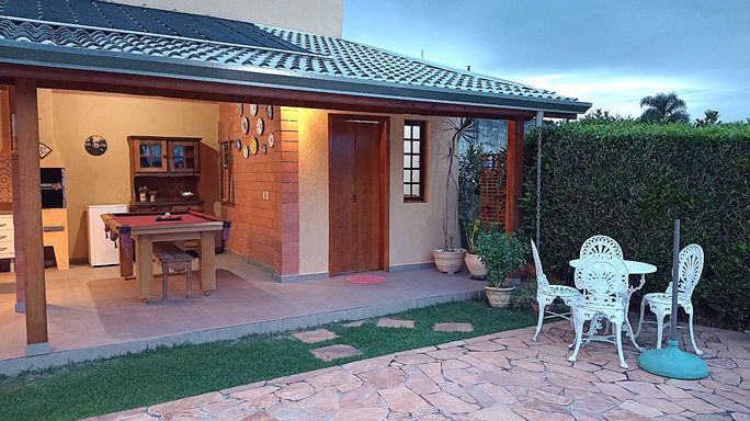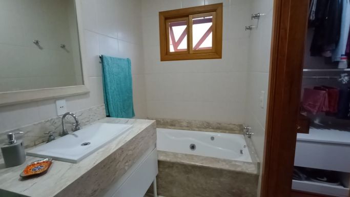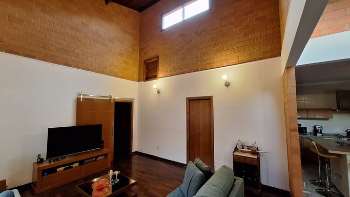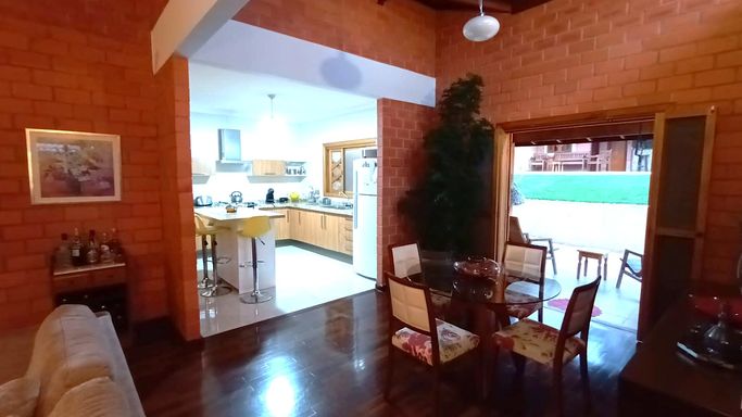 Logo na entrada, um elegante hall conduz aos ambientes sociais, compostos por sala de jantar e uma aconchegante sala de TV com lareira, criando um clima acolhedor, especialmente em dias mais frios. A área íntima conta com três dormitórios espaçosos, sendo uma suíte máster equipada com closet e banheira de hidromassagem, proporcionando conforto e privacidade.
