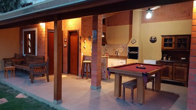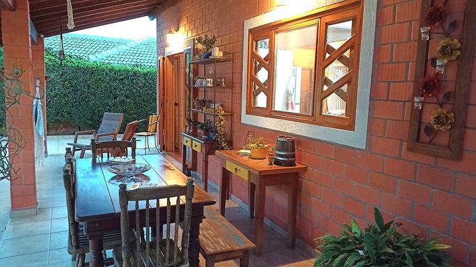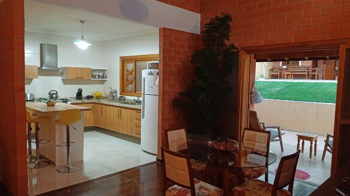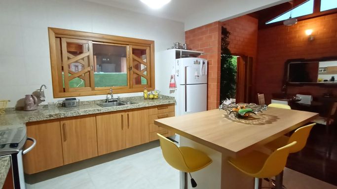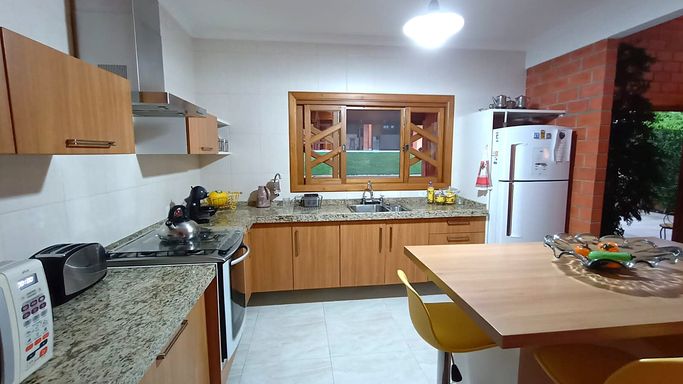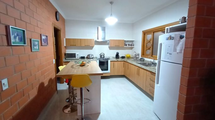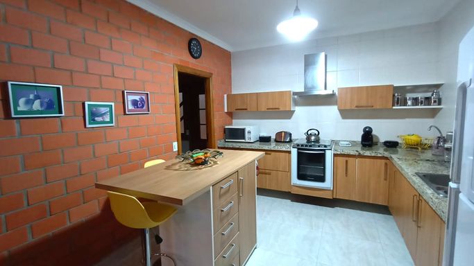 A cozinha é planejada, com armários funcionais, despensa e fácil acesso à lavanderia independente, garantindo praticidade na rotina. Um dos grandes diferenciais do imóvel é a edícula versátil, com quarto e banheiro, que pode ser utilizada como home office, espaço para hóspedes ou apoio de serviço.