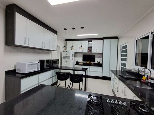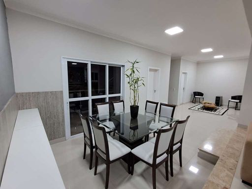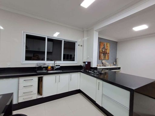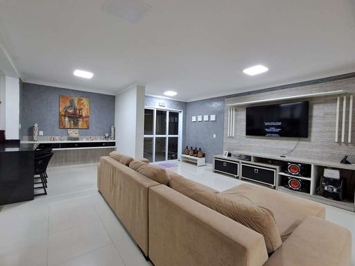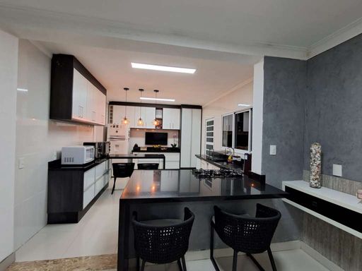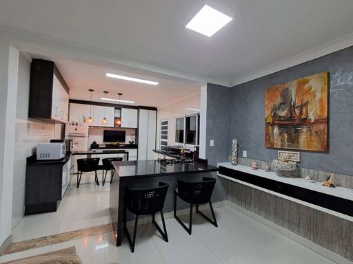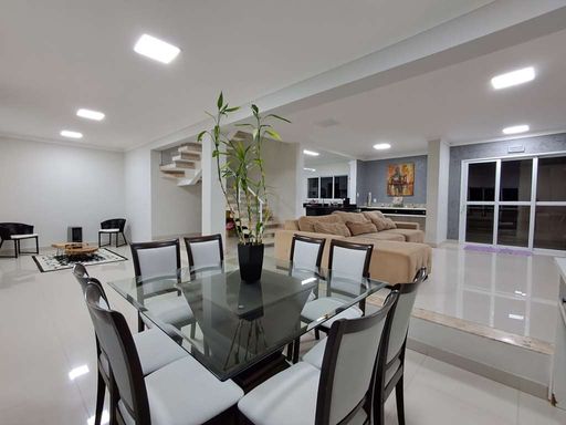 Este imóvel apresenta um projeto arrojado e privilegiado, pensado para quem busca conforto, sofisticação e integração com a natureza. Com acabamentos impecáveis, a casa utiliza porcelanato de primeira linha, esquadrias e janelas sob medida e portas pivotantes que valorizam a arquitetura contemporânea e a iluminação natural. O living foi projetado para quatro ambientes integrados, contemplando salas de estar, jantar, lareira a gás e espaço para refeições, criando um cenário acolhedor e funcional para o dia a dia e para receber convidados. A cozinha é aberta para a área social, equipada com bancada em granito preto São Gabriel e ampla quantidade de armários planejados, garantindo praticidade e elegância. Há ainda um escritório reservado, ideal para home office ou estudos.