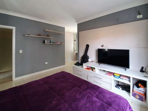 No pavimento superior, a casa dispõe de três amplas suítes repletas de armários planejados, sendo duas delas com espaço para escritório e varanda com vista espetacular para a área verde. A suíte master é um verdadeiro refúgio, com aproximadamente 100 m², closet generoso e uma elegante sala de banho equipada com hidromassagem, oferecendo conforto e privacidade em alto nível. A garagem comporta duas vagas cobertas e mais duas descobertas, atendendo perfeitamente às necessidades da residência.